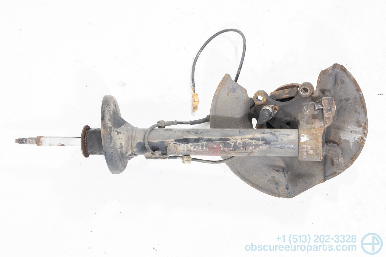 Used BMW front right strut casing and hub for the E30 3-Series. This strut casing is for models with ABS.