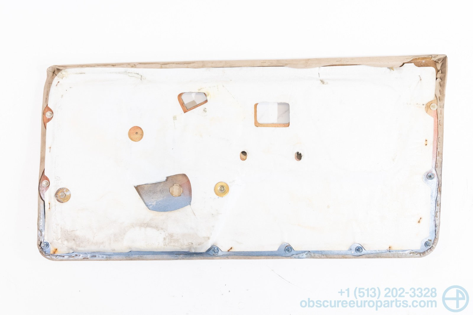 Used BMW left door card in Natur Braun for the E30 3-Series convertible. There is some scuffing on the door pocket as seen in photo 6. There is a rear in the upholstery as seen in photo 7.