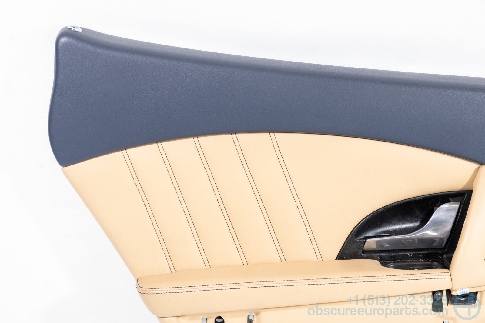 Used Maserati rear left door card in Navy Blue and Beige for the M139 Quattroporte.