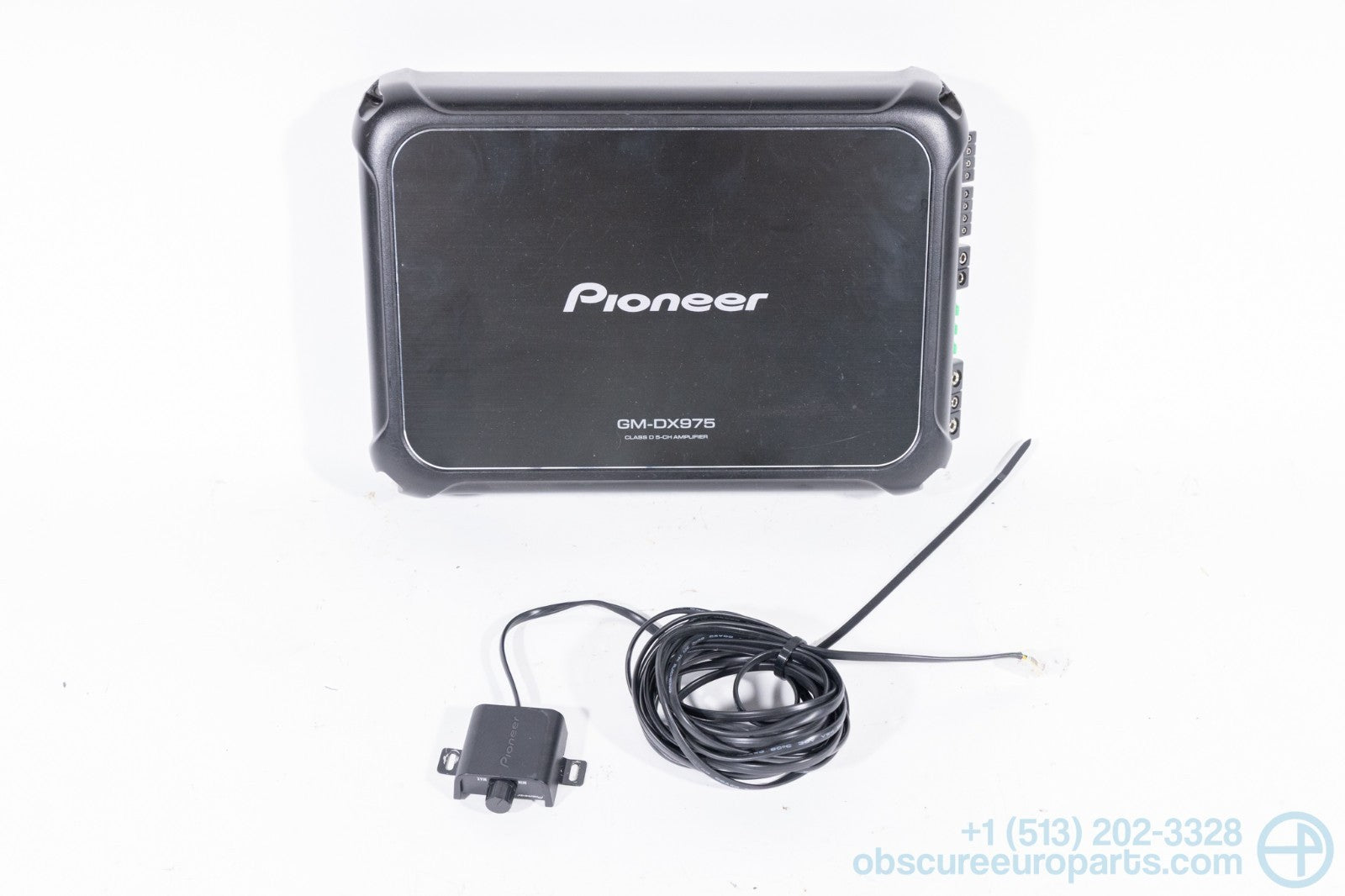 Used Pioneer GM-DX975 5 Channel 2000W class D amplifier. This amp comes with the remote control adjustment knob and cable.